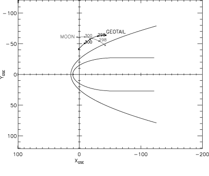 }1 1994”N10ŒŽ25“ú‚ÌŒŽ‚ÆGEOTAIL‰q¯‚Ì‹O“¹BGSEÀ•Wxy–Ê‚Ì“Š‰eB
