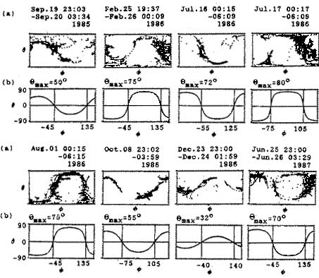 (b) 計算によって求められた、平面に平行な磁場vectorの方向分布。