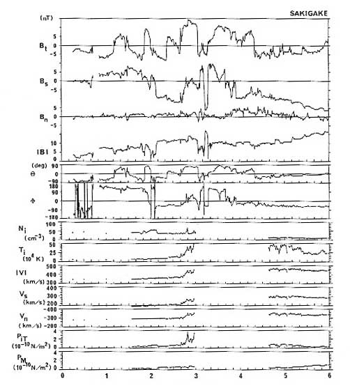 図4.1986年8月1日の磁場およびplasma data.